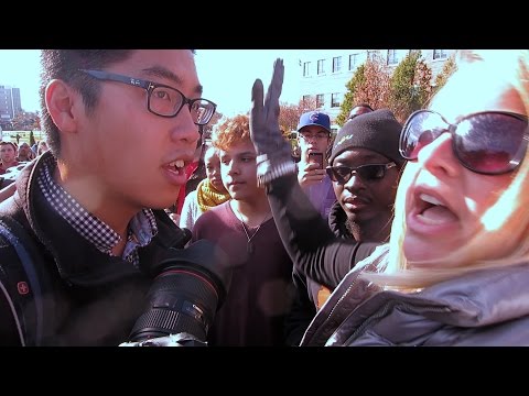 This is quite literally a case of "your rights end where my feelings begin." Basically, some of the protesters had set up a "safe space". My guess is, she's so caught up in the SJ bullshit (keep the lie simple, after all) that she actually believed it would work.
