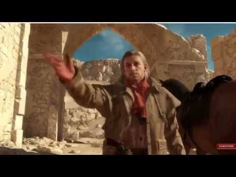 > A giant space-ship comes out of the sandstorm with music blaring.