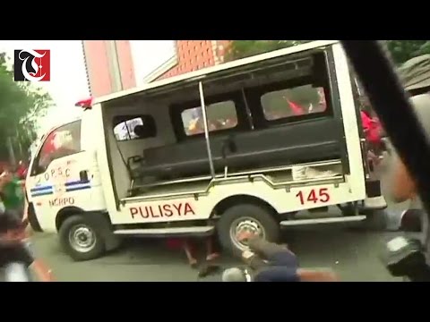 >car surrounded by mob of gommie terrorists armed with clubs